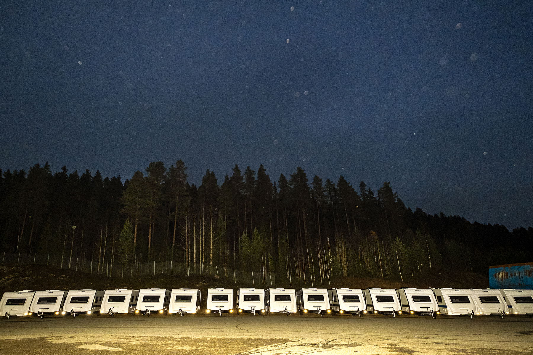 I fabriken växer husvagnarna fram station för station. Först monteras chassit, sedan karossen och därefter inredning och härvan av elkablar. Längst bort i fabrikshallen står några färdiga husvagnar, redo för ett sista test. Ute på gården kör Sebastian Jonsson in en husvagn i fuktkammaren. Under en timme ska den utsättas för 10 000 liter vatten så att han ser att den är helt vattentät.