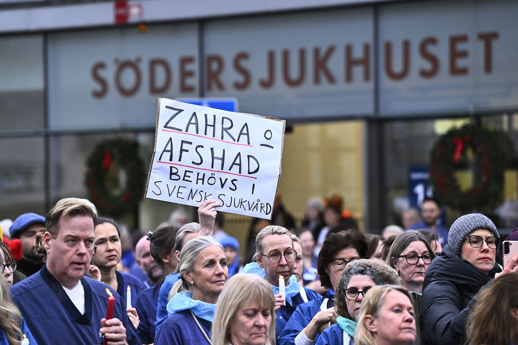 Personal vid Södersjukhuset demonstrerar mot utvisningen av undersköterskorna Zahra Kazemipour och hennes man Afshad Joubeh till Iran. Foto: Henrik Montgomery/TT.
