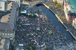 Demonstranterna samlade en bred vänsterkoalition, med socialdemokraterna och vänsterpartierna Enhetslistan och Socialistisk Folkeparti. Dock var inga partier inblandade i planerandet av demonstrationerna utan det var en ren facklig och studentorganiserad protest.