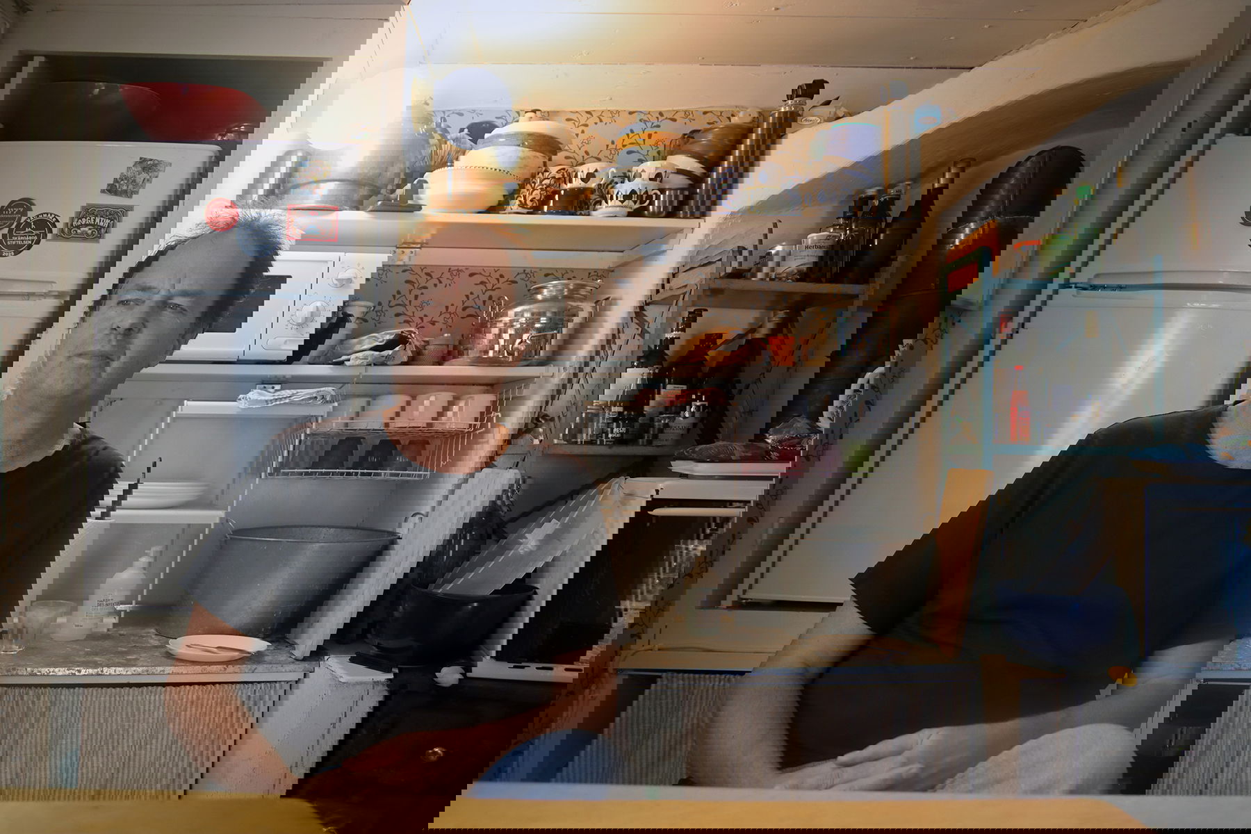 Nu står han framför mig i gummistövlar, framför den röda trästugan från 1700-talet i Vitabergsparken på Södermalm. Den tillhör ett välbevarat ”reservatsområde” för arbetarna från de närliggande industrierna i Barnängen. Han hukar sig för att få plats i hallen.