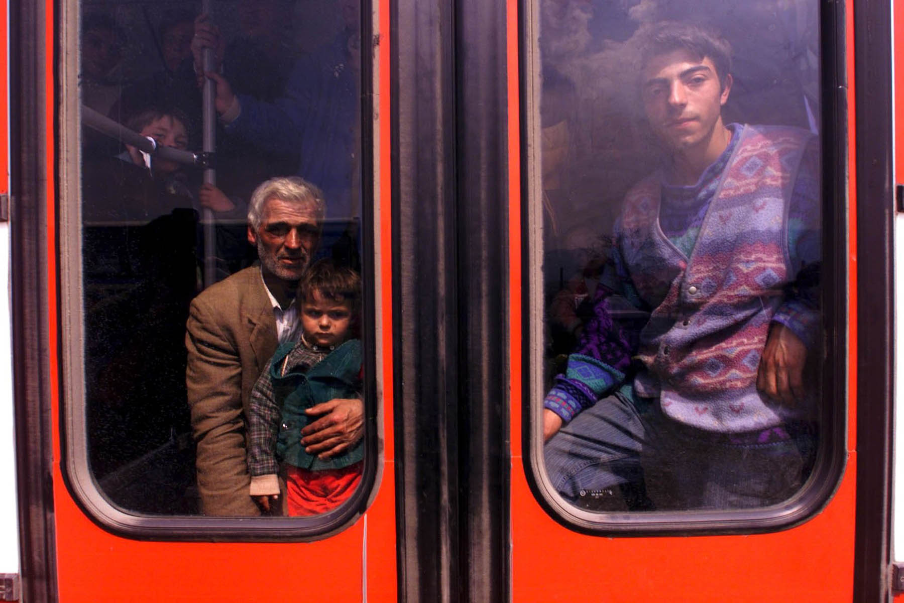 Deporterade. Medan Nato bombar Jugoslavien 1999, skickar Milosevic kosovoalbaner på tåg till Makedonien, vilket leder till en stor flyktingström. Huruvida väst eller öst är huvudansvariga för konflikten leder till en konflikt på Ordfront. Foto: Dan Hansson/TT.
