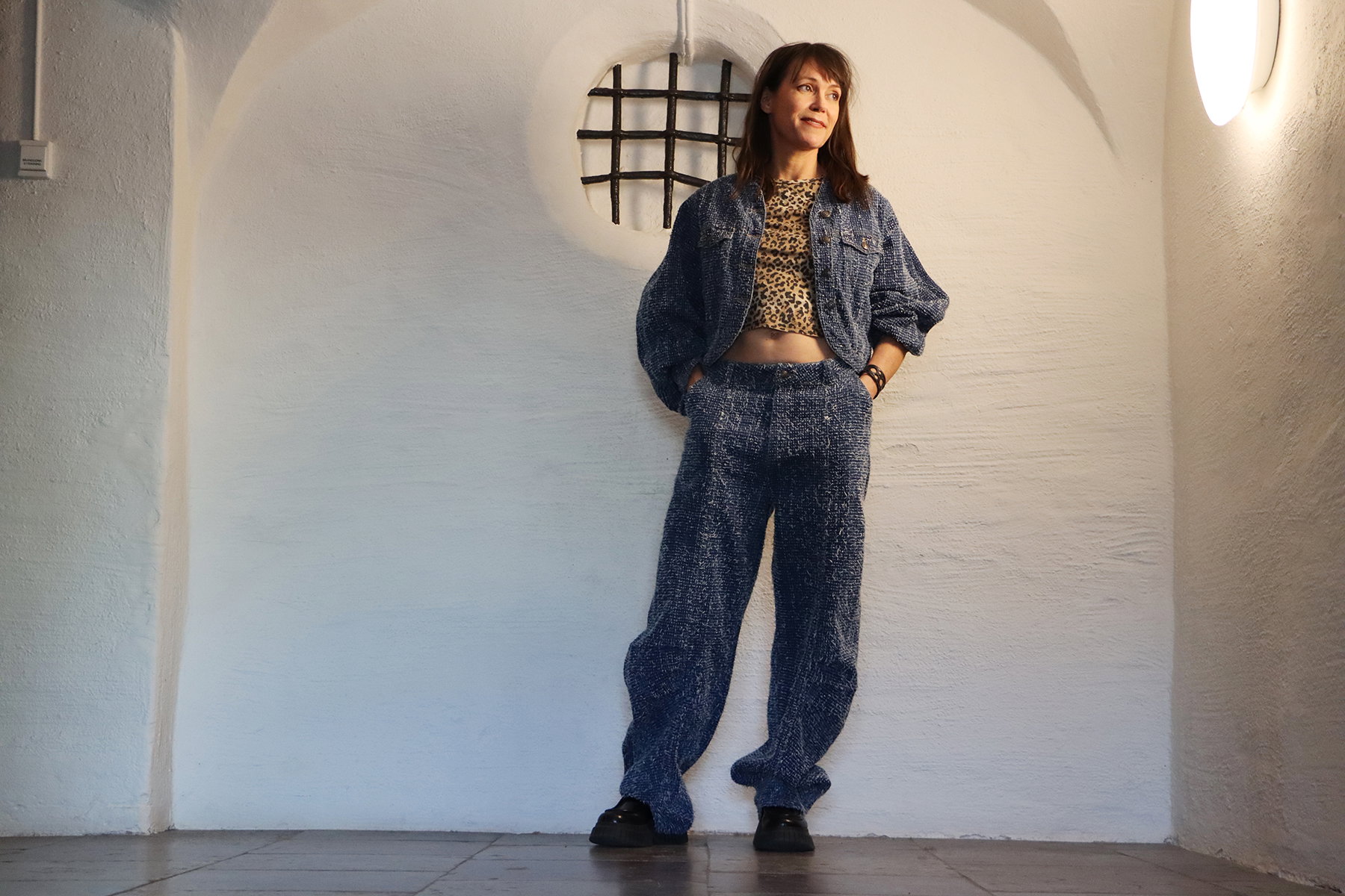 ”Jag måste hinna byta om för min releasefest” skriver Elisabeth Hjorth i ett mejl när vi dividerar om var och när vi ska ses. Men när jag väl ser henne på den soldränkta stenplanen vid Stockholms stadsmuseum är hon redan iklädd blå chanel-inspirerad dräkt med punkigt missmatchande leopardlinne.