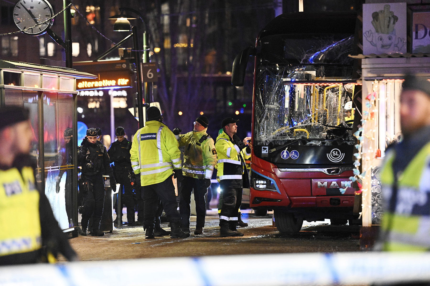 Av de 17 personerna ombord på bussen i Liljeholmen skadades alla utom en. Foto: Fredrik Sandberg/TT.