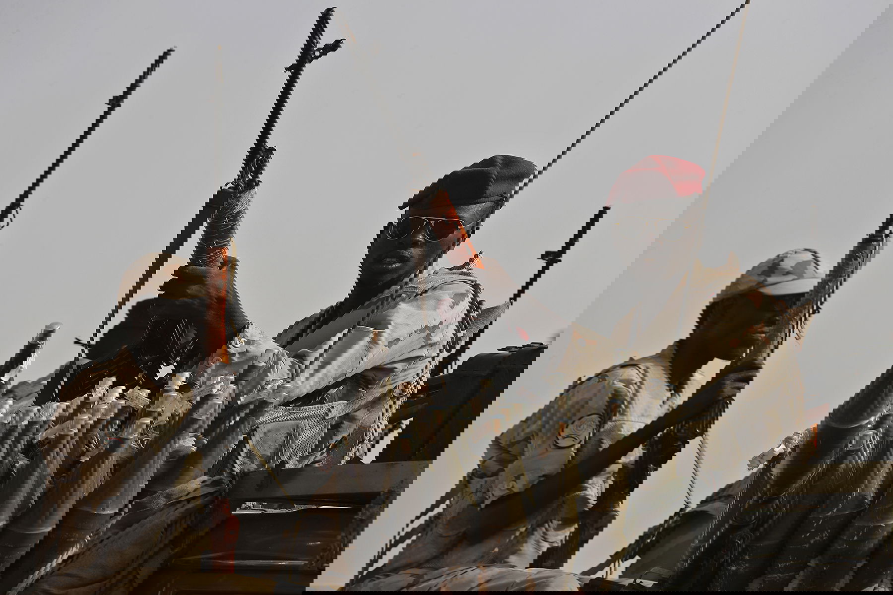 Beväpnade. Soldater från RSF vaktar ett område i Östra Nilprovinsen inför ledaren Hemetis möte med en allierad stam. Foto: Hussein Malla/AP.