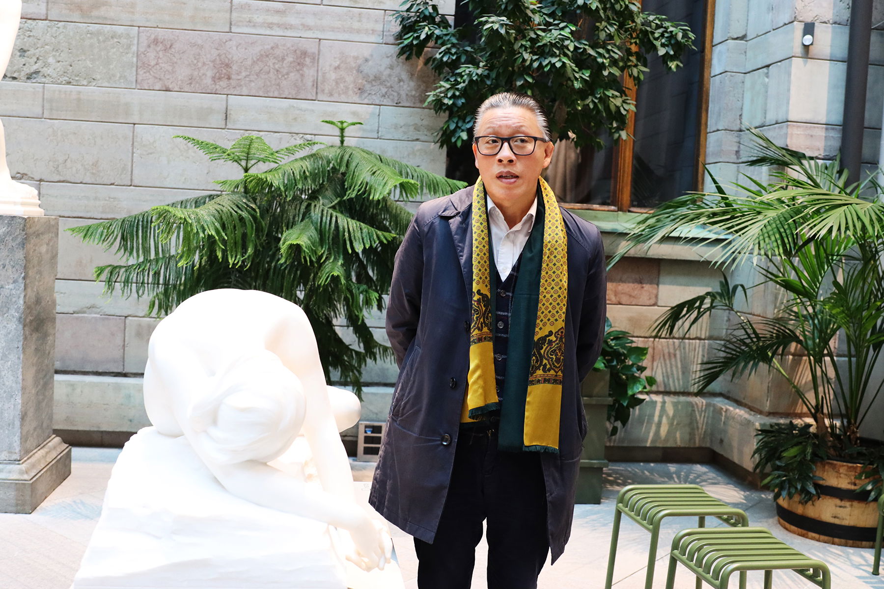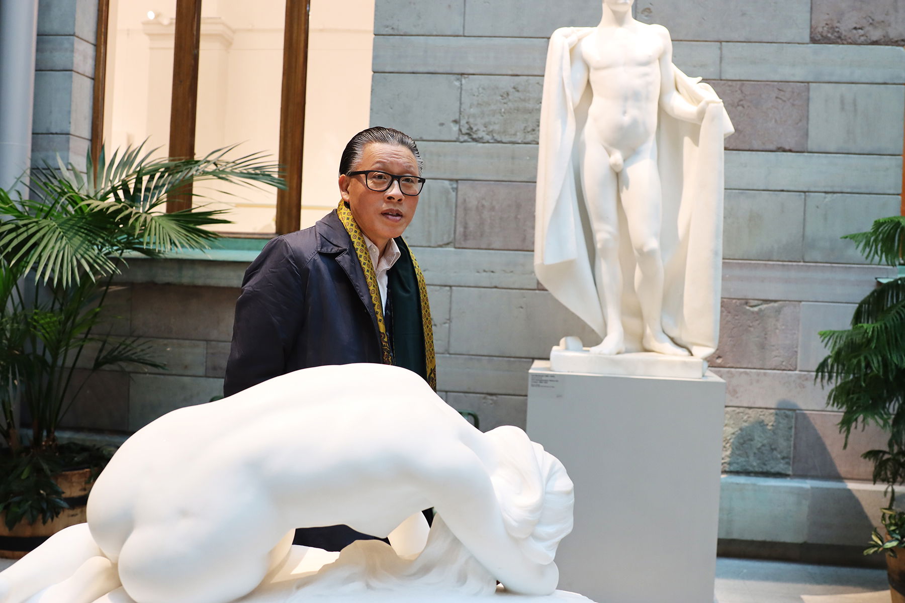 Flamman möter Tobias Hübinette bland marmorstatyerna på Nationalmuseum. Foto: Paulina Sokolow.