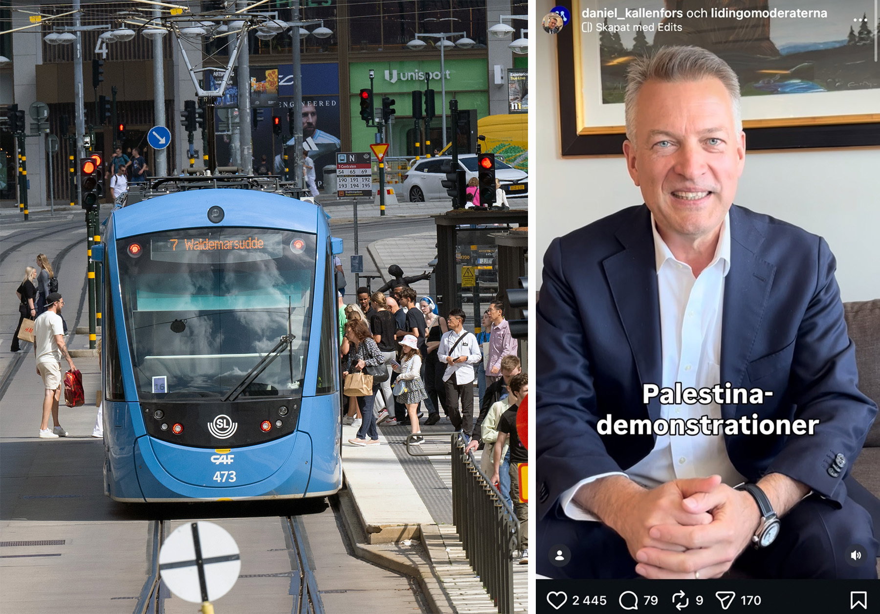 Lidingös toppmoderat Daniel Källenfors hävdade att spårvagnsföretaget i Stockholm måste betala ”skyhöga viten” om avgångar blir försenade på grund av Palestinademonstrationer. Men påståendet är falskt, kan Flamman avslöja. Nu har filmen tagits ned från kontot.