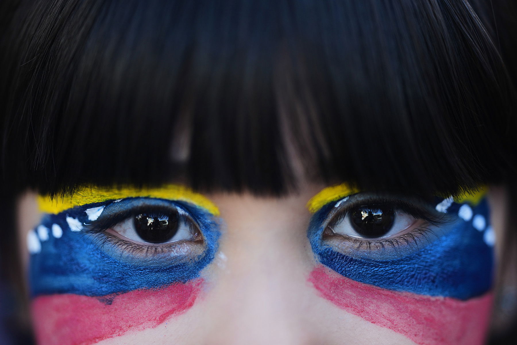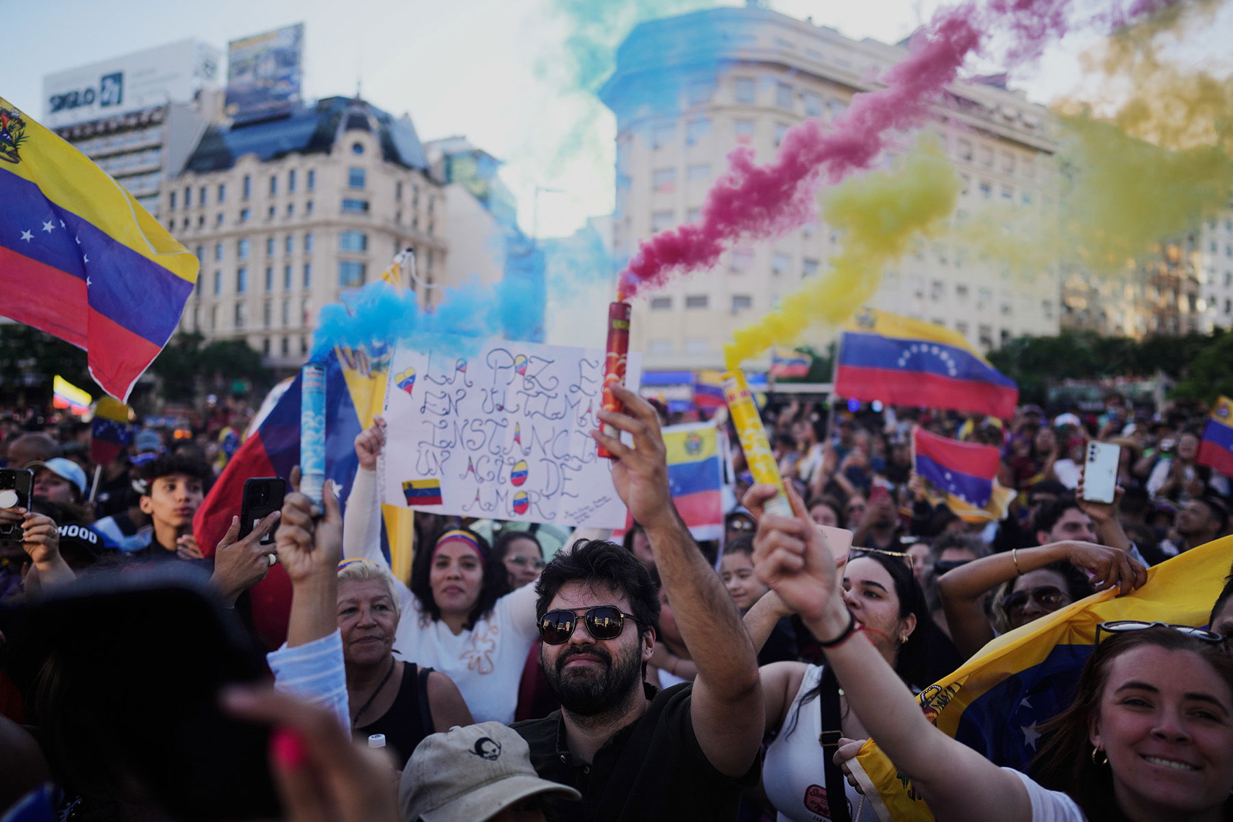Glädje. Venezuelaner firar störtandet av president Nicolás Maduro i Buenos Aires. Foto: Natacha Pisarenko/AP/TT.
