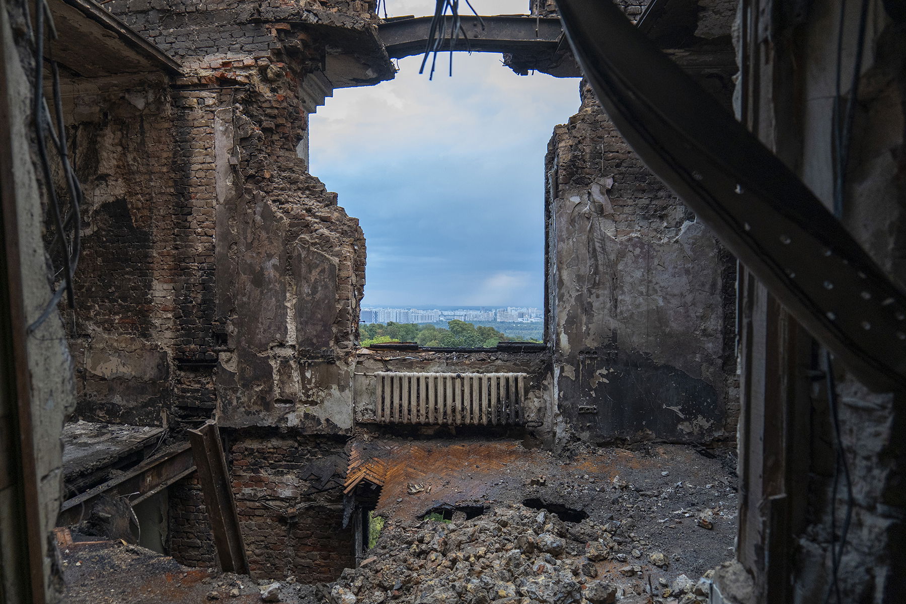 En skadad regeringsbyggnad i Kiev efter en rysk attack, den 8 september 2025. Foto: Dan Bashakov/AP.