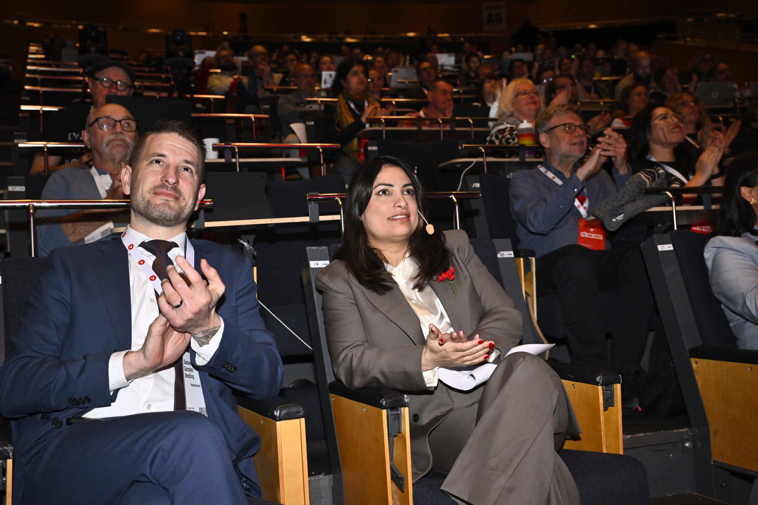 V-ledaren fortsatte med en rad löften: sänkt arbetstid, frysta hyror och dessutom ett högkostnadsskydd i tandvården. Därefter drog hon på sig en röd keps med texten ”beskatta miljardärerna” och stämde upp i Internationalen (visserligen tillsammans med resten av kongressen).