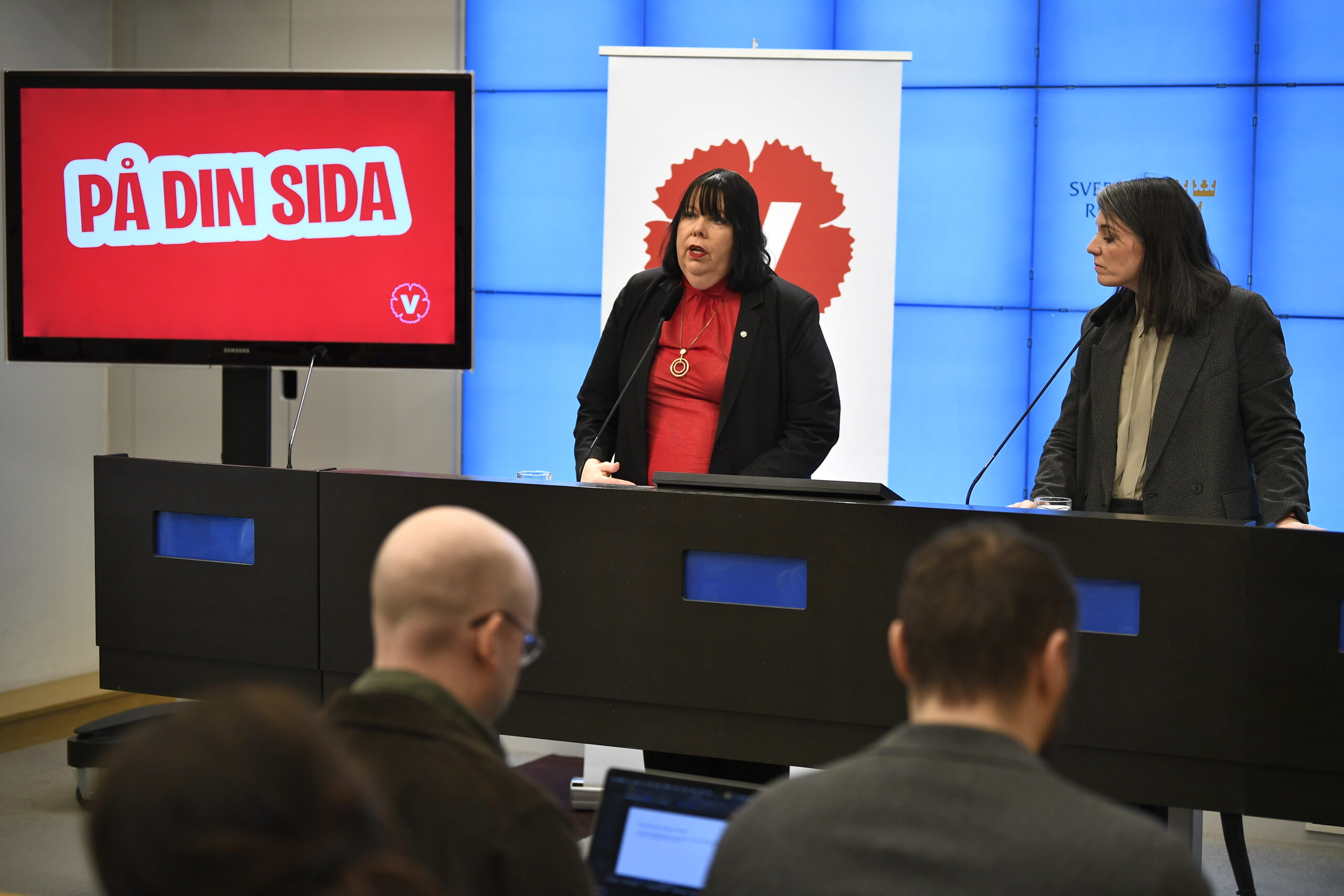 Valbudskapet presenterades under en pressträff i riksdagen på onsdag förmiddag. Foto: Lars Schröder/TT.