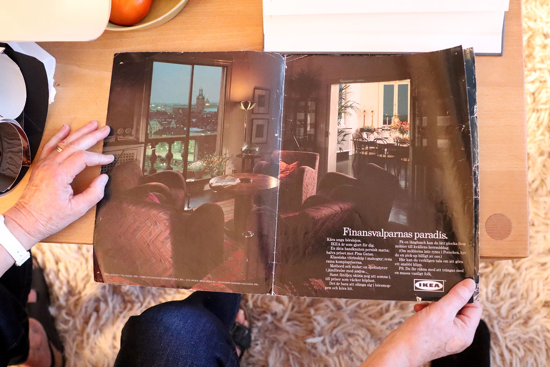 ”Kära unga börslejon. Ikea är som gjort för dig. En äkta handknuten persisk matta: halva priset mot fina gatan. […] Om möblerna inte ryms i Porschen, hyr du en pickup billigt av oss. […] PS. Du får räkna med att trängas med en massa vanligt folk.”